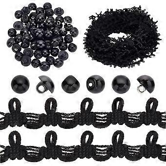 Ornament Accessories Kits Including Resin Imitation Pearl Shank Buttons 1-Hole with Polyester Elastic Cord with Loops Black