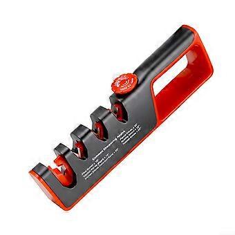 4 Slot Knife Sharpener with NonSlip Base and Ergonomic Handle for Kitchen Use Red