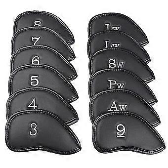 12 Pcs Waterproof Leather Golf Iron Head Covers Set with Clear Number Markings Universal Fit