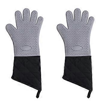 Extra Long Silicone Oven Mitts with Quilted Liner, Heat Resistant Grill and Baking Gloves