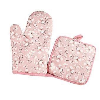 Heat Resistant Baking Gloves Pink, Temp BBQ Cooking Cotton Mitts for Oven, Grilling, Microwave