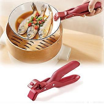 Silicone AntiScald Clip with NonSlip Grip for Hot Bowls and Plates, OneHanded Heat Resistant Holder (Red)