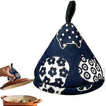 Heat Resistant Oven Mitts with Non Slip Grip Cat Design, Blue Pot Holder for Camping BBQ Grill