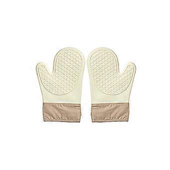 Long Silicone Oven Mitts Heat Resistant Kitchen Gloves with AntiSlip Grip Beige