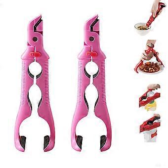 2pcs MultiAngle Hot Plate Gripper and Bowl Holder Clip, HeatResistant Silicone Tool with Lock and Bottle Opener, Pink
