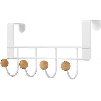 Over the Door Hook Space-Saving Wall Shelf with 4 Wooden Head Hooks, Rust-Resistant Towel Rack for Entry Area
