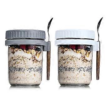 Overnight Oat Container with Lid and Spoon Set, 10 oz Airtight Cereal Storage for Oatmeal, Milk, and Salad, White and Grey