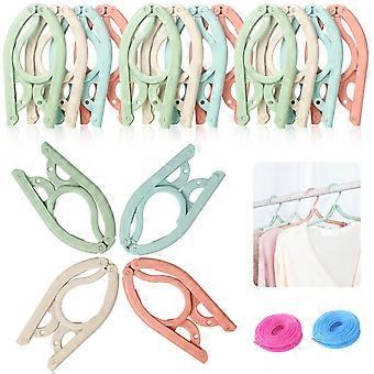 Pack of 12 Foldable Clothes Hangers with Washing Line, NonSlip for Travel (4 Colours)