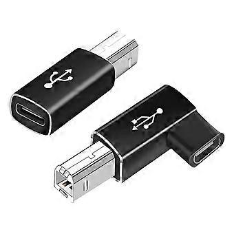 Pack of 2 USB C to USB B Adapter, MIDI Cable, Right Angle, Black
