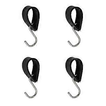 Pack of 4 Black S Hooks with Leather Loop, Heavy-Duty Hanging Hooks for Clothes, Hats, and Bags