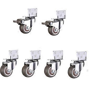 Pack of 6 Soft Rubber Swivel Castors, 2 Brake 4 No Brake, 2 Inch