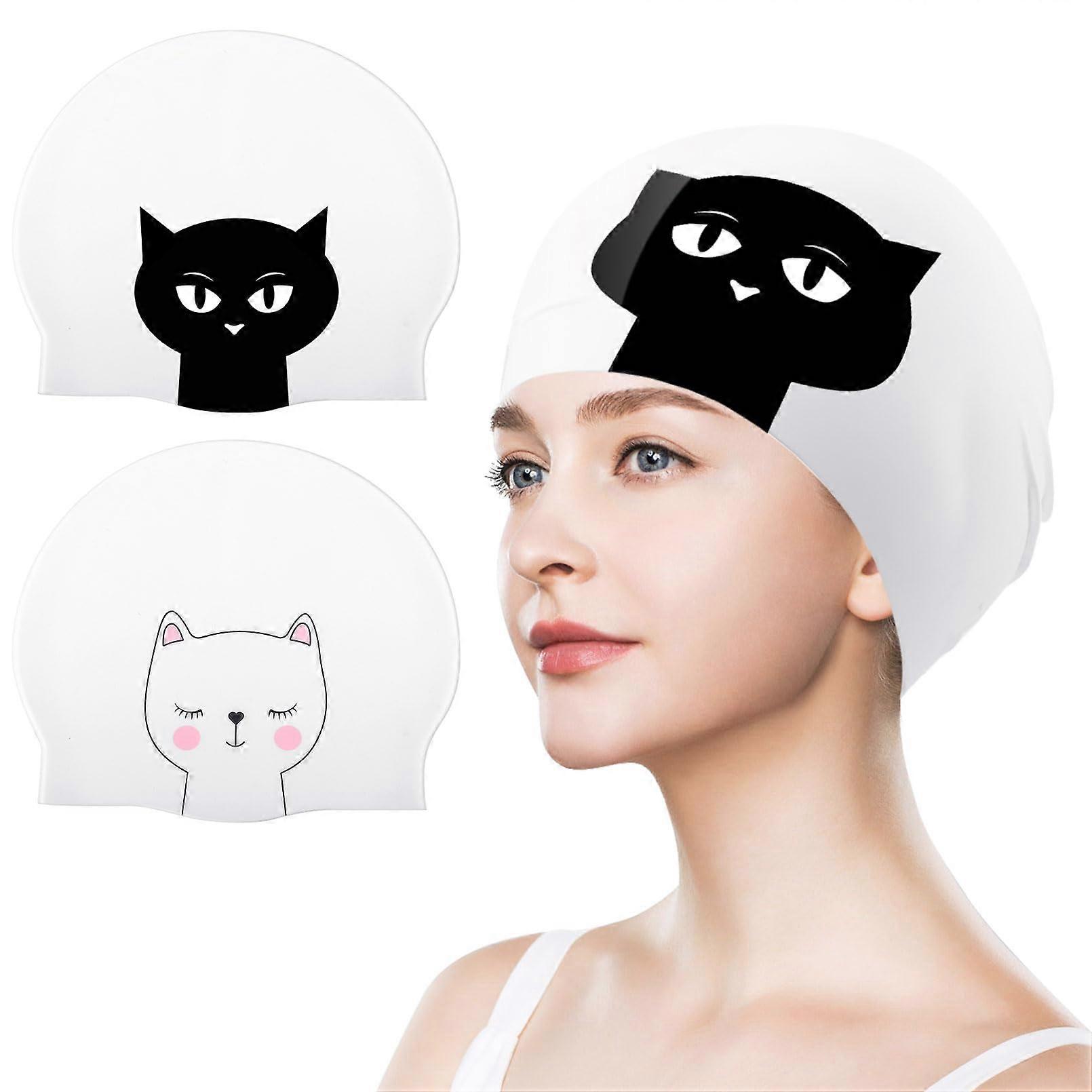 Pack of 2 Silicone Swimming Caps for Women,, Stretchy, Comfortable
