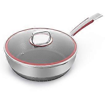 Stainless Steel Frying Pan with Glass Lid, Round Bottom for Gas Stove and Induction Cooker