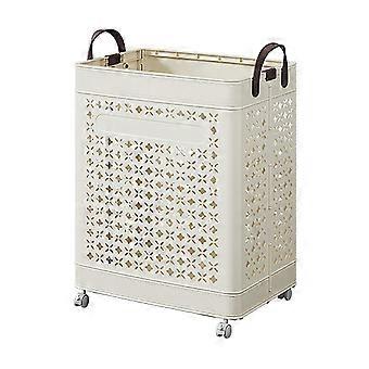 Collapsible Laundry Hamper with Wheels, Ventilated Basket for Bedroom Bathroom Dorm, Beige 31cm