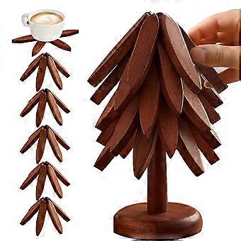Wooden Trivets and Coasters Set, Folding Tree Shape, Heat Resistant Placemats for Hot Dishes