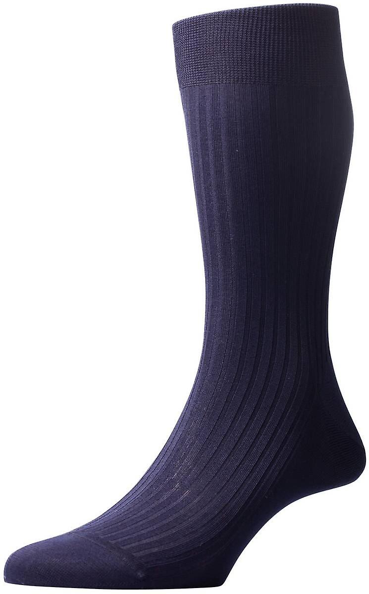 Pantherella Vale Rib Cotton Lisle Socks - Navy