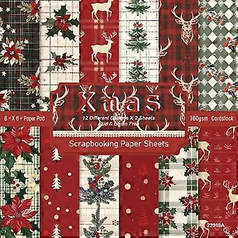 Christmas Scrapbook Paper 6x6 Pad with 24 Sheets, Holiday Pattern Card Stock for DIY Crafts