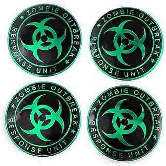 Set of 4 56mm Wheel Hub Cap Stickers Zombie Outbreak Emblem Aluminum Alloy RustResistant Green