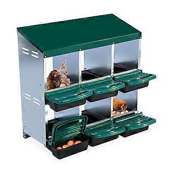 6 Hole 2 Tier Chicken Nesting Box, Galvanized Steel Roll Away Egg Laying Box with Easy Clean Pullout Trays