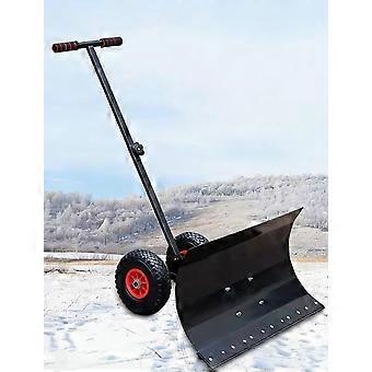 Snow Shovel with Wheels, 29in Galvanized Steel Snow Pusher, Adjustable Handle, 5 Angle Blade for Driveways and Sidewalks