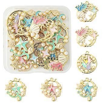 Pendants For Women 12Pcs 6 Styles Ocean Theme Rack Plating Alloy Enamel Pendants with ABS Imitation Pearl