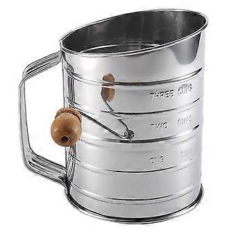 Stainless Steel Flour Sifter 3 Cup Hand Crank Baking Sifter with Fine Mesh, Dishwasher Safe
