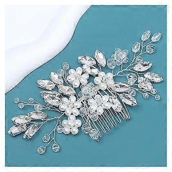 Wedding Hair Accessories Pearl Flower Bridal Hair Comb with Crystal for Women Silver Elegant Design