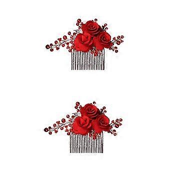 Elegant Red Rose Bridal Hair Comb with Crystal Pearl Accents for Vintage Wedding Hairstyle