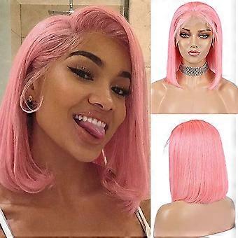 13x4 Lace Front Human Hair Wig Pre Plucked Bob Pink Glueless Density for Black Women 10'