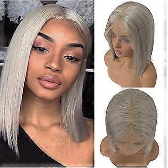 13x6 Lace Front Bob Wig Human Hair Brazilian Straight Grey Pre Plucked Glueless with Baby Hair 16'