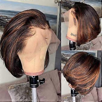 12 Inch Human Hair Lace Front Bob Wig Middle Brown Honey Blonde Highlight 130 Density Natural Hairline