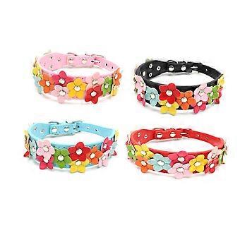 Pet Collar with Floral Pattern for Dogs and Cats, Size S, Pink Decorative Flowers, Alloy Buckle Material
