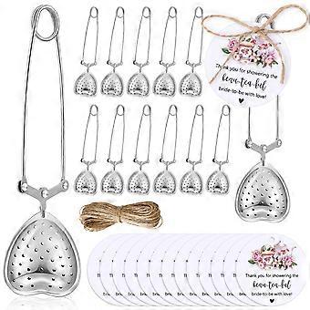 24 Sets Bridal Shower Tea Party Favors Heart Shaped Tea Infuser with Thank You Cards for Guests