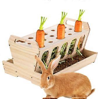 Small Animal Hay Feeder Wooden Rack for Guinea Pigs Rabbits Hamsters Durable Easy to Clean