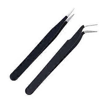 Stainless Steel Precision Tweezers Set, Antistatic Straight and Curved Tips for Nail Art Rhinestones, 2 Pcs Black