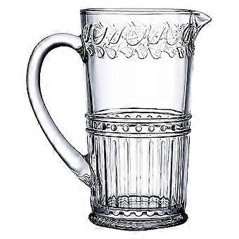Vintage Glass Pitcher 34oz with Embossed Pattern Clear Water Jug for Drinks and MultiPurpose Use