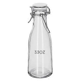 33oz Glass Beverage Bottle with Airtight Leakproof Lid for Juice Milk Water and Oil Storage