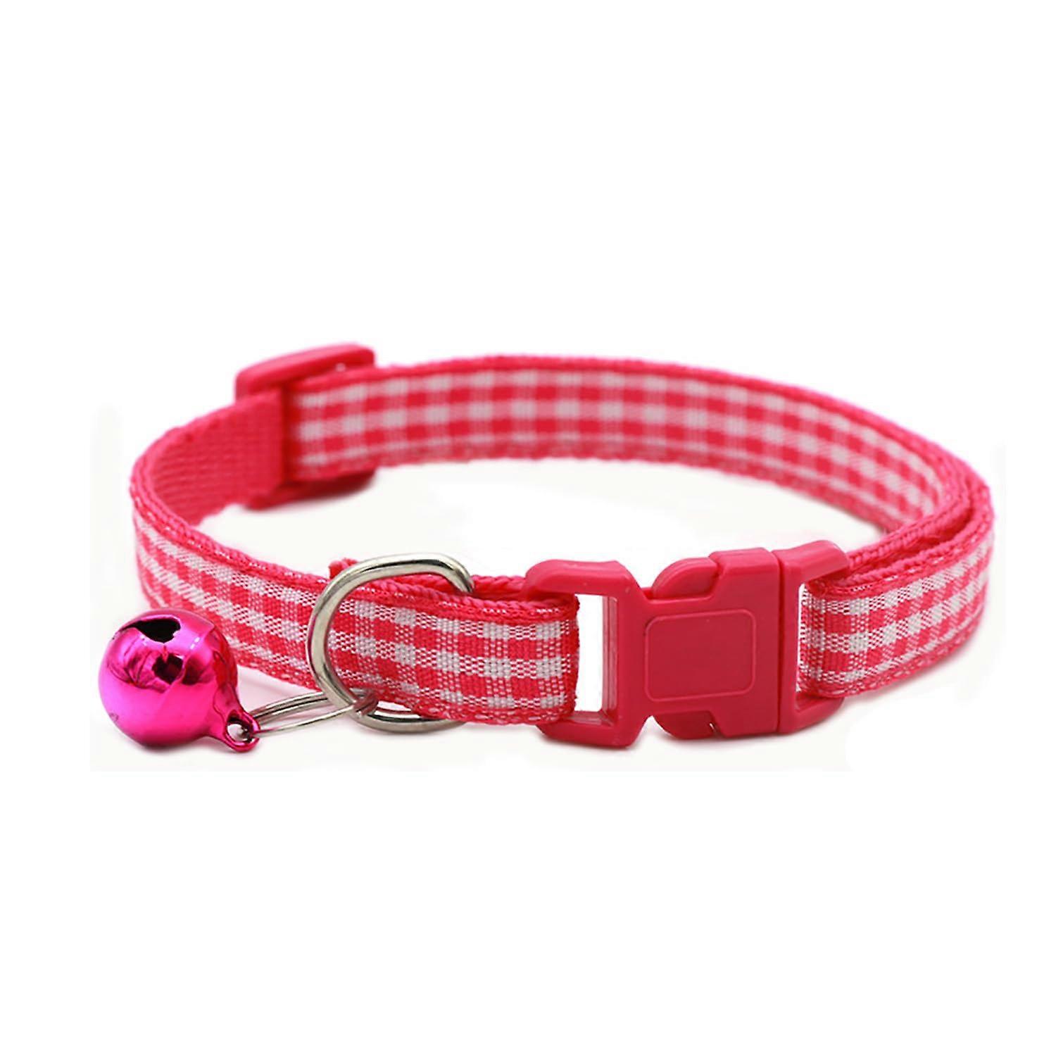 Plaid Cat Collar with Bells for Cats - Adjustable Size, Durable Fabric, Stylish Roseo Design in Pink