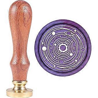 Planet Wax Seal Stamp Universe Sealing Wax Stamps Retro Solar System Wax Stamp 25mm Removable Brass Seal with Wood Handle