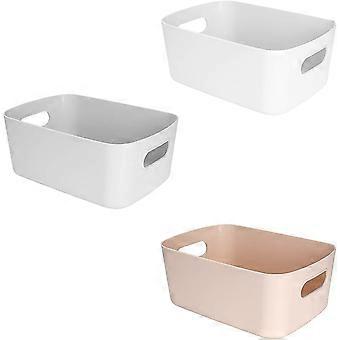 Plastic Storage Basket With Handles, Small Lightweight Storage Box Bin Organizer For Bathroom, Kitchen, Nursery, Cosmetics, Drawer, Shelves (set Of 3)
