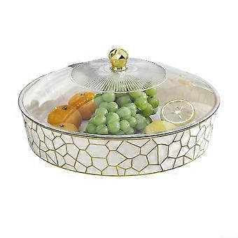 Fruit Serving Tray Round Transparent Plastic Plate with Freshness Lid for Indoor Outdoor 25x25x14cm White Gold