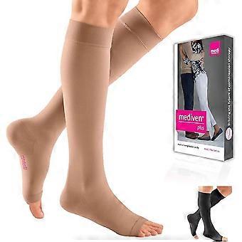 Plus for Men Women, 2030 mmHg Open Toe, Knee High Compression Socks, Extra Wide VI , Beige