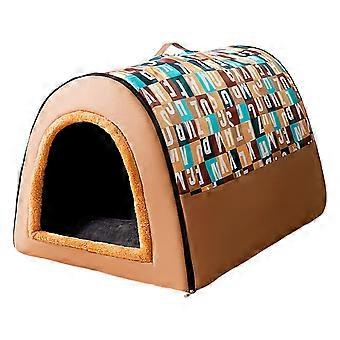 Plush Dog House - Foldable Soft Dog Bed with Elastic Cushion for Small Medium Large Dogs Cats - Warm Winter Cave Sofa 47x37x37cm Brown