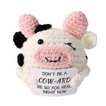 Crochet Cow Plush with Humorous Card, Soft Durable Cotton Thread Doll for Bedroom and Desk Decor