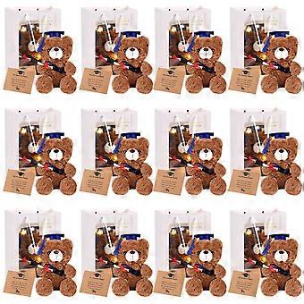 Graduation Teddy Bear Bulk Set Class of 2025 with Caps and Gift Bags 9 Inch Brown Blue Hat