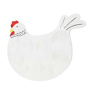 Deviled Egg Platter Ceramic Chicken Shaped Serving Tray with Center Compartment, 8 Slot Plate for Parties and Easter