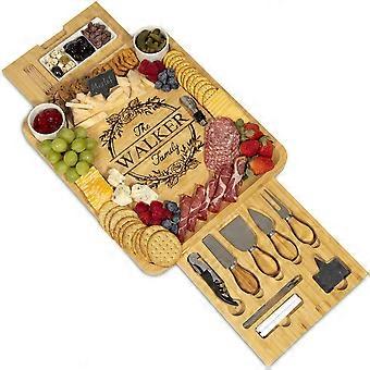 Cheese Board with Bowls, Custom Engraved Bamboo Charcuterie Board Wedding Gift Set