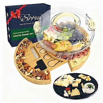 Round Charcuterie and Cheese Board with Locking Lid, Builtin Tools, EcoFriendly Bamboo