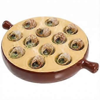 Escargot Baking Dish Ceramic Snail Plate with 12 Holes and Handles for Oven to Table Serving 6.75 Inch