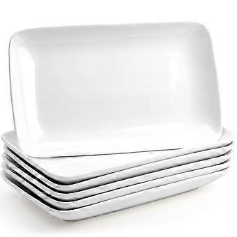 Porcelain Serving Platters Set of 6, 10 Inch Rectangular Plates for Dessert, Sushi, Oven Safe